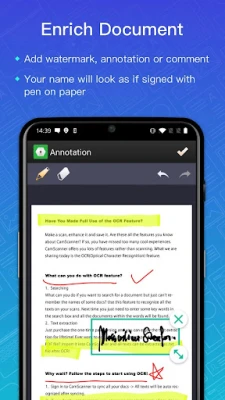 Seja para estudantes, profissionais liberais, gestores ou advogados, CamScanner revela-se um recurso indispensável. Digitalize uma vasta gama de materiais, desde recibos, contratos e notas, a livros e até papel de fax. Desfrute de modos de digitalização específicos para documentos de identificação e passaportes, garantindo rapidez e precisão. Além disso, a capacidade de leitura de códigos QR expande a sua utilidade. A tecnologia OCR inteligente reconhece texto em qualquer objeto, permitindo-lhe criar arquivos PDF, JPG ou TXT a partir de fotos e documentos, inclusive digitalizações de várias páginas num só documento, e adicionar assinaturas eletrónicas com facilidade.