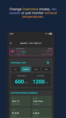 Com HashWatcher, o controle está nas suas mãos. Experimente o inédito gerenciamento da velocidade das ventoinhas para todos os mineradores Canaan, além de recursos de overclocking específicos para BitAxe, permitindo ajustar com precisão suas configurações e alcançar taxas de hash mais elevadas. Tenha uma visão cristalina e em tempo real de métricas cruciais como hashrate (TH/s), consumo de energia (kW), temperaturas operacionais (°C) e eficiência (W/Ths), tudo em um piscar de olhos. Os painéis detalhados de cada minerador oferecem gráficos ricos e dados para diagnósticos rápidos e operações diárias sem falhas.