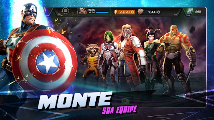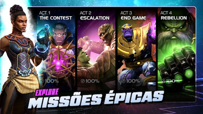 Enfrente batalhas cósmicas definitivas com seus Super-Heróis e Supervilões Marvel favoritos. Monte sua equipe lendária, com Capitão América, Homem-Aranha, Thor, Shuri e Senhor Fantástico, e domine a ação épica de lutas. Torne-se o Campeão Marvel Supremo nesta aventura inesquecível.
