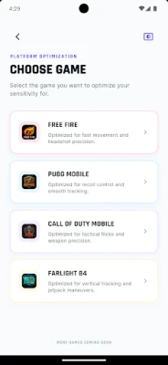 Desbloqueie o potencial máximo da sua performance em jogos mobile e domine cada partida. Chega de adivinhações sobre a sensibilidade ideal. Este otimizador inteligente detecta automaticamente o modelo exato do seu smartphone – desde os modelos de entrada até os dispositivos mais avançados – e instantaneamente recomenda o código de sensibilidade mais preciso e otimizado para a configuração específica do seu aparelho. Garanta uma vantagem competitiva sem precedentes, com ajustes personalizados que se adaptam perfeitamente ao seu hardware único.