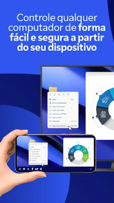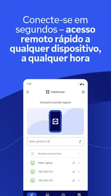 Com o TeamViewer, acesse e controle sua área de trabalho, gerencie arquivos e preste suporte remoto a dispositivos, a qualquer hora e lugar. Tenha acesso rápido e seguro diretamente do seu Android, tablet ou Chromebook, otimizando sua produtividade em movimento.