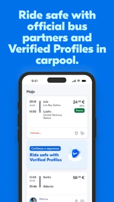 Para quem procura viajar, BlaBlaCar abre um mundo de possibilidades à sua espera. Navegue por uma infinidade de destinos e descubra percursos que o levam exatamente onde precisa, muitas vezes com pontos de encontro convenientemente próximos. Garanta o seu lugar com facilidade – pode reservar instantaneamente ou solicitar um assento – e desfrute de viagens acessíveis que o aproximam do seu ponto final, com a flexibilidade de encontrar soluções quase "porta a porta".
