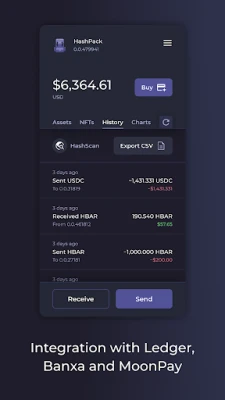 O HashPack eleva sua jornada digital com recursos avançados que simplificam cada interação. Participe de negociações NFT ponto a ponto diretamente na plataforma, staking nativo de HBAR para otimizar seus rendimentos, e aproveite a conveniência de adquirir HBAR na carteira através de integrações com Banxa e MoonPay. A criação de contas é descomplicada e gratuita, complementada pelo suporte a múltiplas contas, um catálogo de endereços eficiente e total compatibilidade com HTS. Além disso, conecte-se com segurança aos seus dApps Hedera favoritos, utilizando o HashPack para autorizar transações sem nunca expor suas chaves privadas.